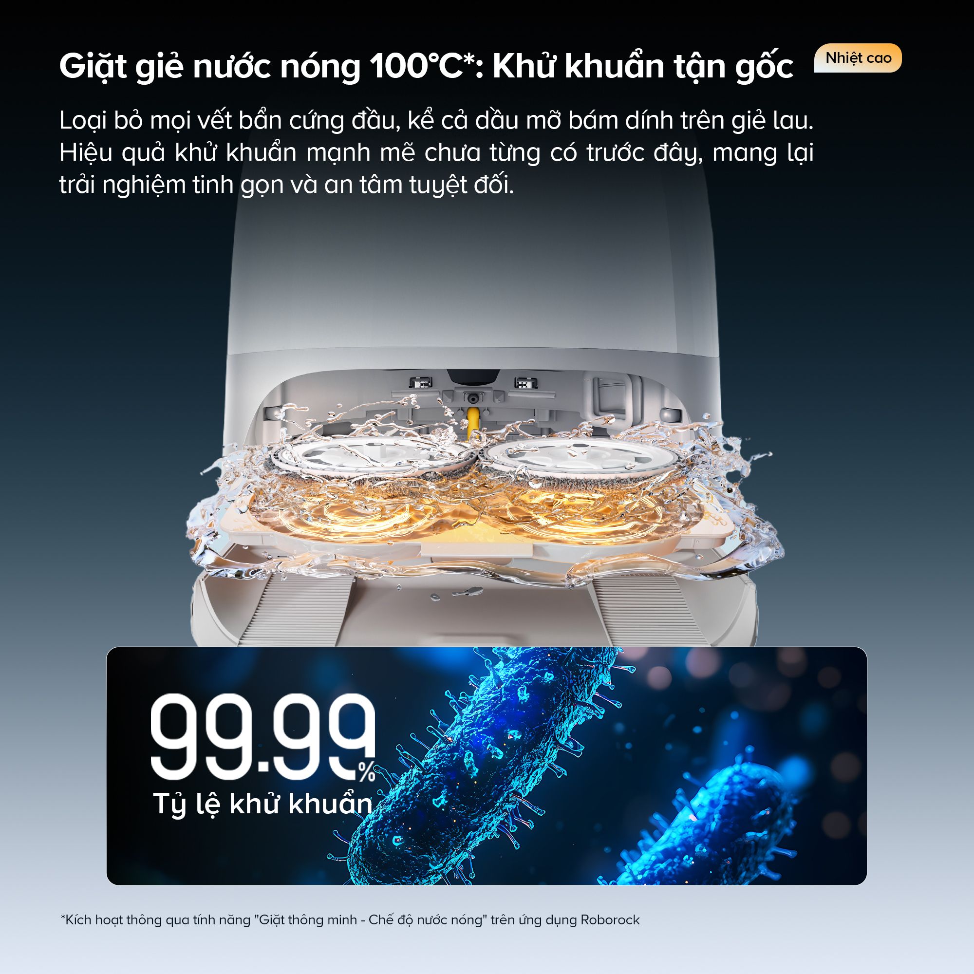 - Dock sạc cải tiến thế hệ mới: Sỡ hữu nhiều tính năng vượt trội như hệ thống túi bụi kháng khuẩn, cơ chế giặt ngâm, và giặt khăn lau bằng nước nóng 100°C